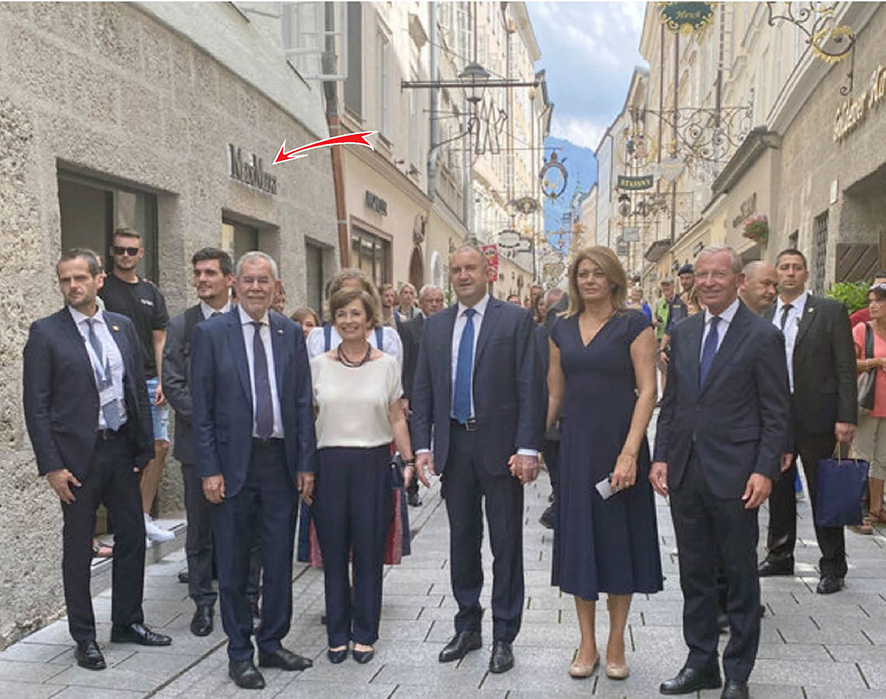 Те се спрели точно пред бутика на престижната марка „Макс Мара“, която е вечното присъствие в гардероба на Ген. Деси. Първата дама предпочита техните тоалети за почти всички официални събития, на които придружава съпруга си, и притежава десетки техни модни шедьоври, чиито цени не падат под 500 лева. Вероятно Радева е била изкушена и от витрините на „Макс Мара“ във Виена, където най-горещите колекции пристигат по-рано, отколкото у нас. По време на тура покрай бутиците Радеви отново погазиха протокола и се държаха през цялото време хванати за ръце. Докато в неформалната улична обстановка този акт е по-допустим, то добрите маниери напълно го изключват по време на посещение на важни институции. Десислава и Румен обаче пак прекрачили това правило и се хванали любовно за ръце, досущ като прясно влюбени осмокласници, дори насред катедралата на Залцбург, пред очите на свещеника, който им изнесъл беседа за историческото място.