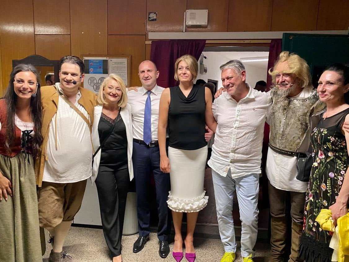 Първата дама и президентът изгледаха заедно мюзикъла „Човек от Ла Манча“ в изпълнение на Държавната опера – Варна. Представлението бе част от програмата по случай честването на 100-годишнината от основаването на Драматичния театър „Стоян Бъчваров“ в морската ни столица, на което всъщност Радев и жена му бяха специални гости. На събитието президентшата се появи облечена във вечната класика – черно и бяло.