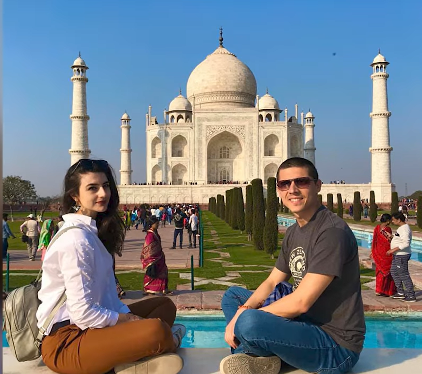 Лена и Мирослав Иванов пред Тадж Махал в Индия