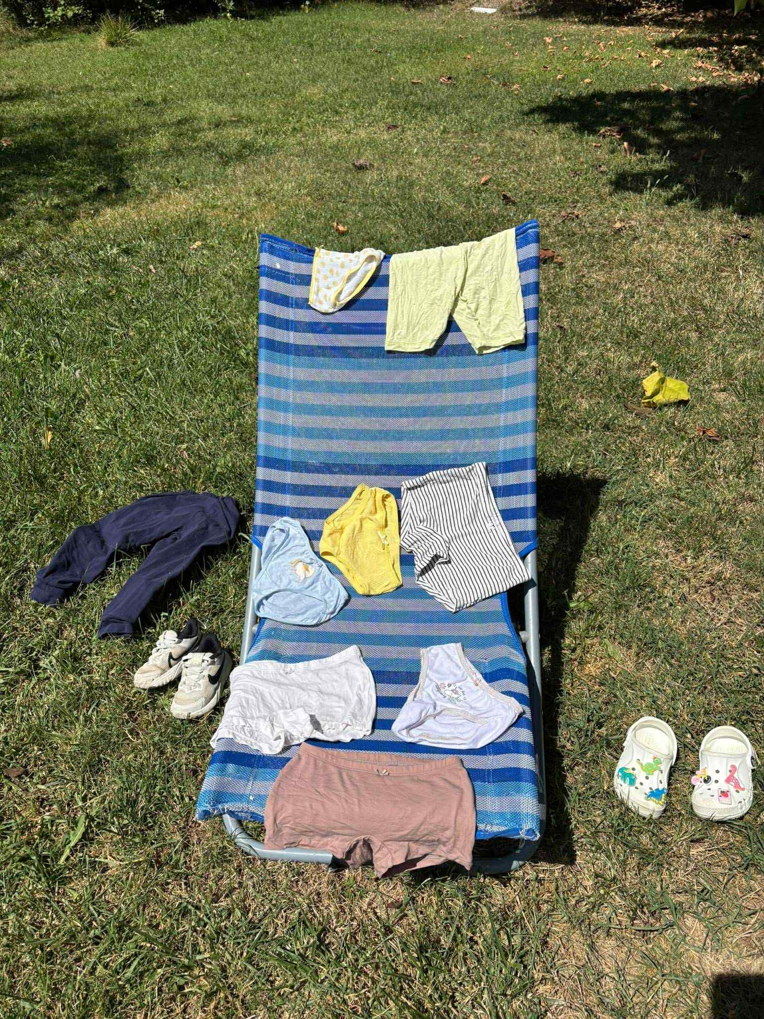 "4 часа и половина - 7 чифта гащички и два броя панталонки плюс една рокля и чифт чорапи, за които няма място на стола. Абсолютен рекорд! Да, точно така изглежда мечтаната почивка!".