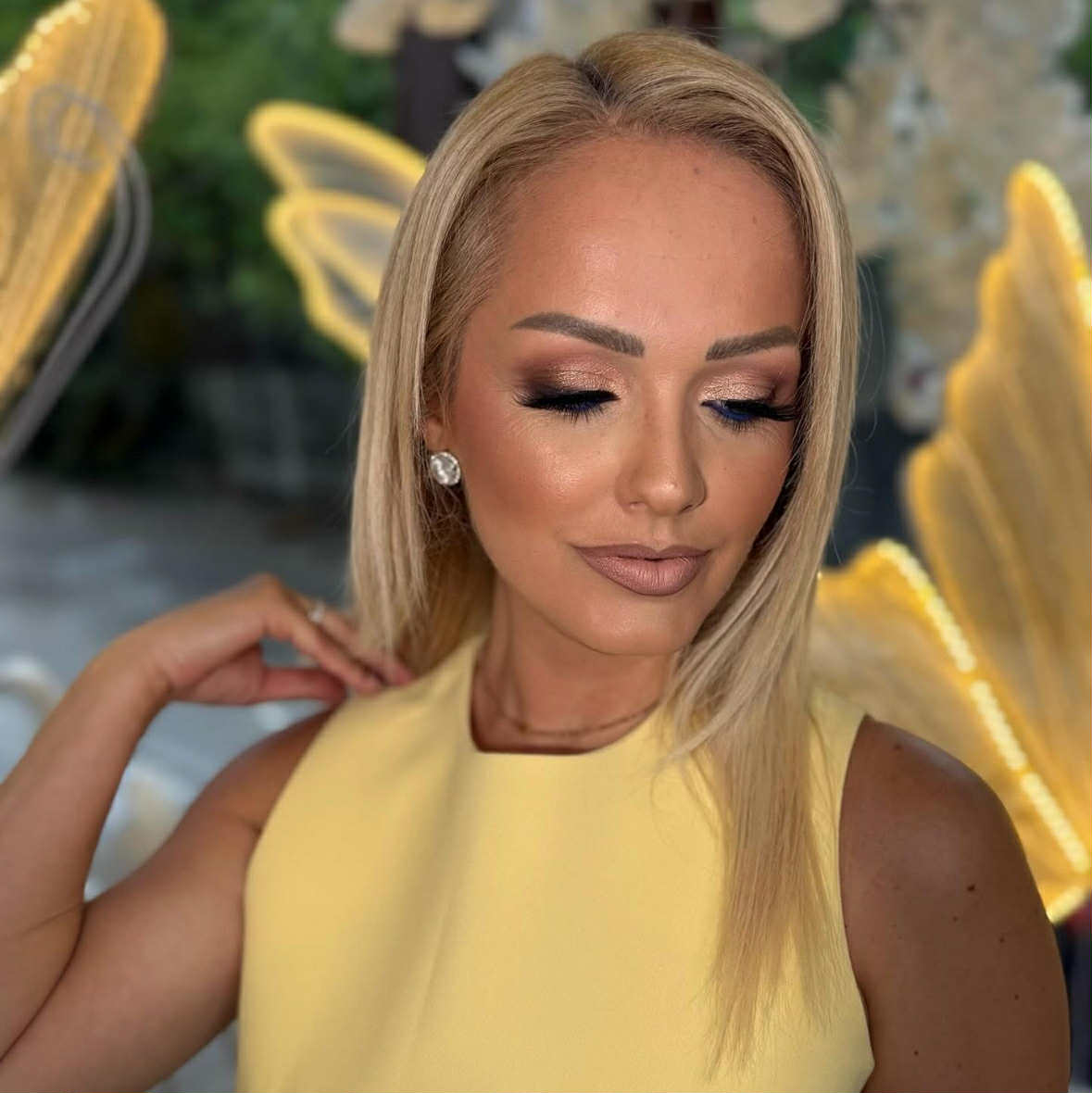 На фотографиите тя позира гордо с безупречен макиаж, а гримьорката ѝ благодари с надпис: „Красива Криси, благодаря ти“.