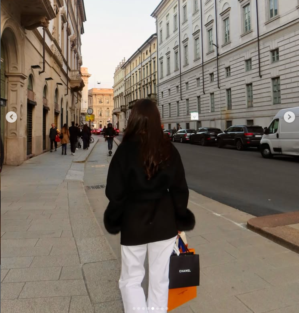 Сегашната ѝ поява в Милано обаче показва съвсем различна страна - тази на млада жена, която обича лукса и умее да си угажда.