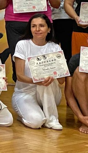 Антоанета позира със сертификат от семинар по бойни изкуства