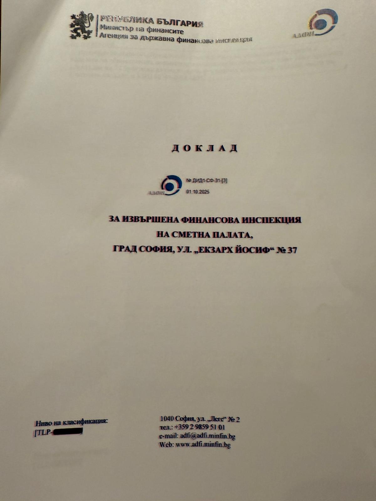 Агенцията за държавна финансова инспекция (АДФИ) обстойно проверява поръчката и излиза на 1 октомври 2025 г. с доклад, който обхваща всички етапи на поръчката - от откриването на процедурата, през разглеждане на офертите, оценката, класирането, до сключването на договора. Заключението е: държавният интерес е изцяло защитен, включително и с условието “плащането да се извърши в срок от 10 работни дни от представяне на фактура-оригинал и двустранно подписан приемо-предавателен протокол”.