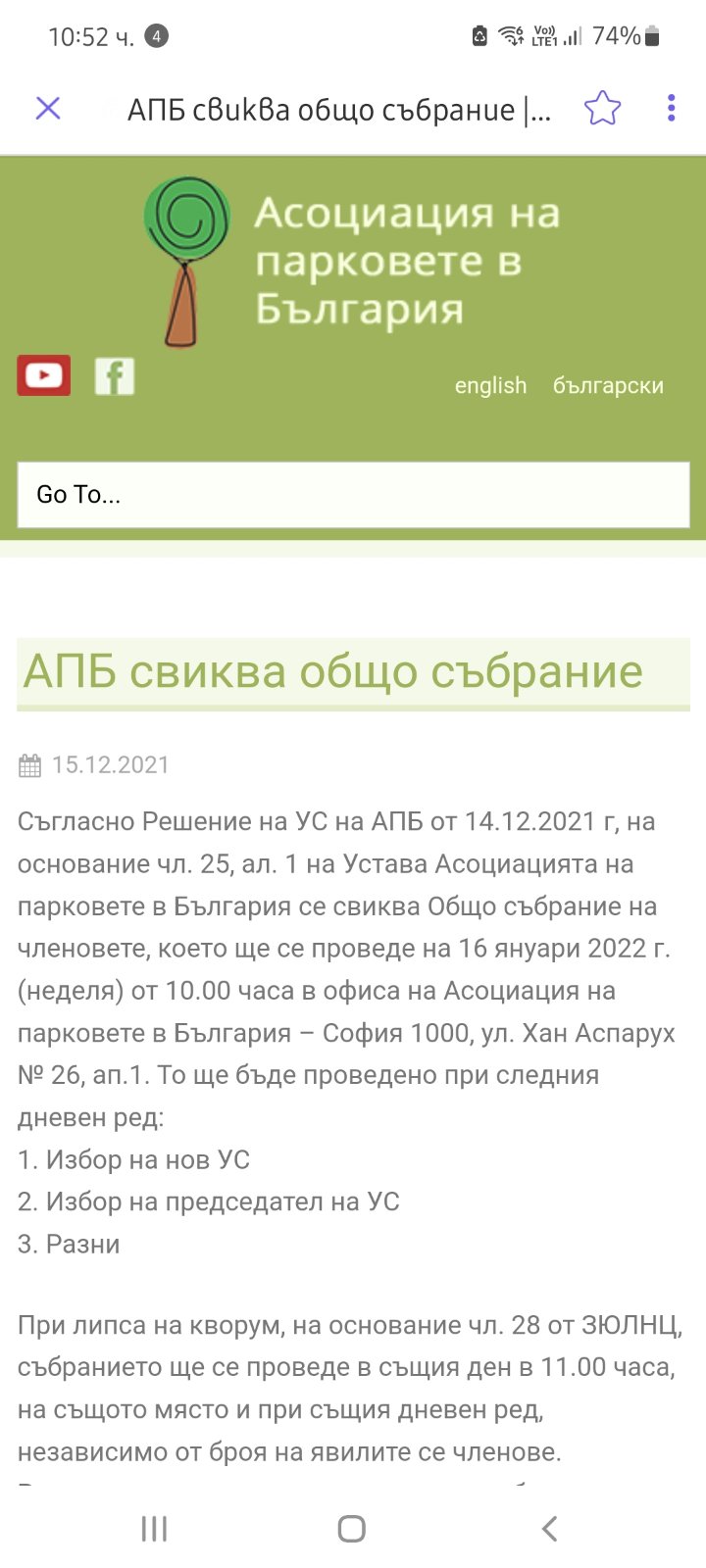 Това става ясно от публикуваната в сайта на Асоциацията на парковете в България обява за свикване на общо събрание на 16 януари 2022 г. за избор на нов Управителен съвет и нов председател. Белев е несменяем шеф на тази асоциация от дълги години, където застъпва в началото на този век.