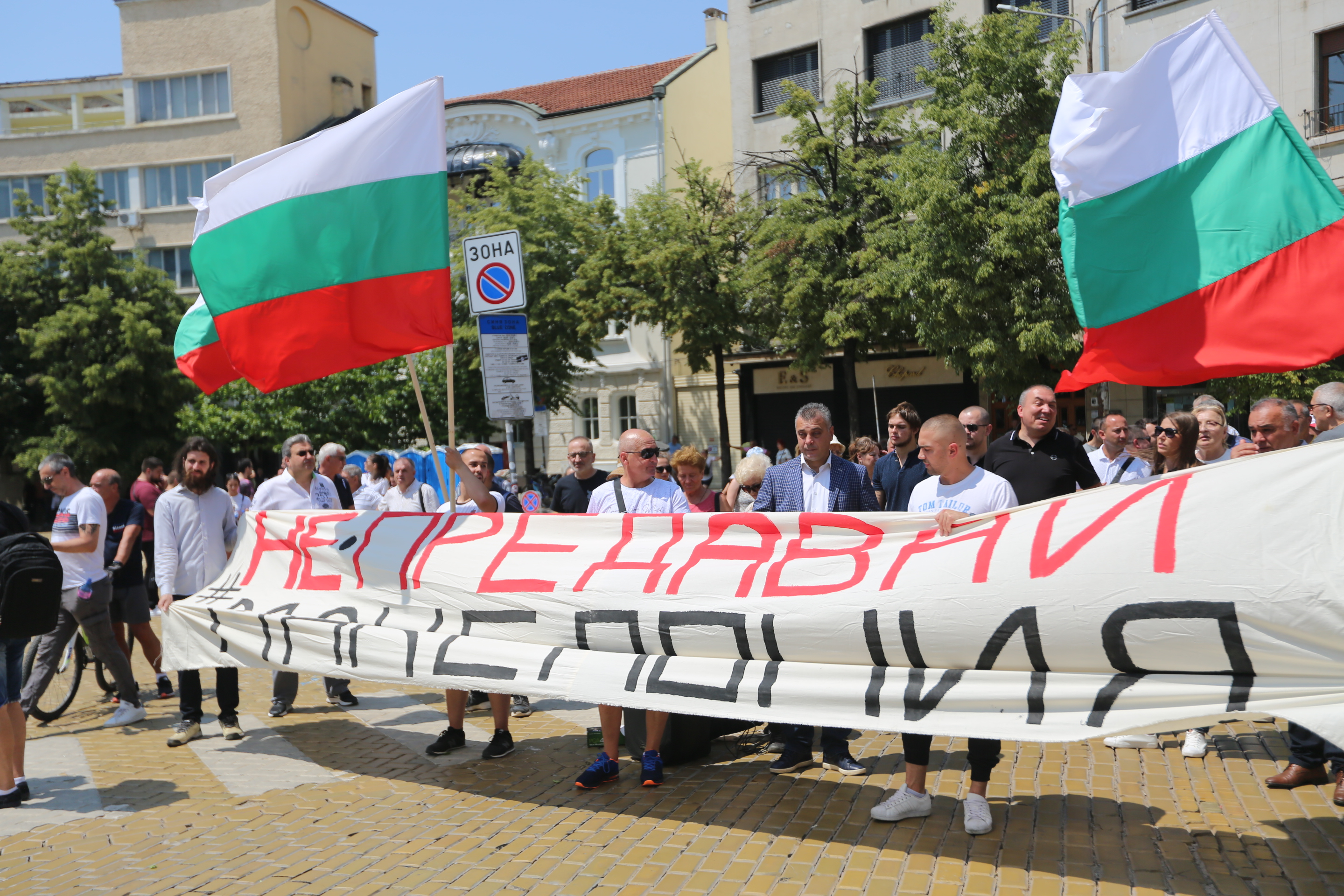 Недоволството на ВМРО е срещу продажната политика на правителството спрямо Северна Македония. "Не предавай Македония", "Кирил Петков - национален предател", "Македония не се продава", са само част от плакатите, които привържениците на организацията издигат срещу кабинета.