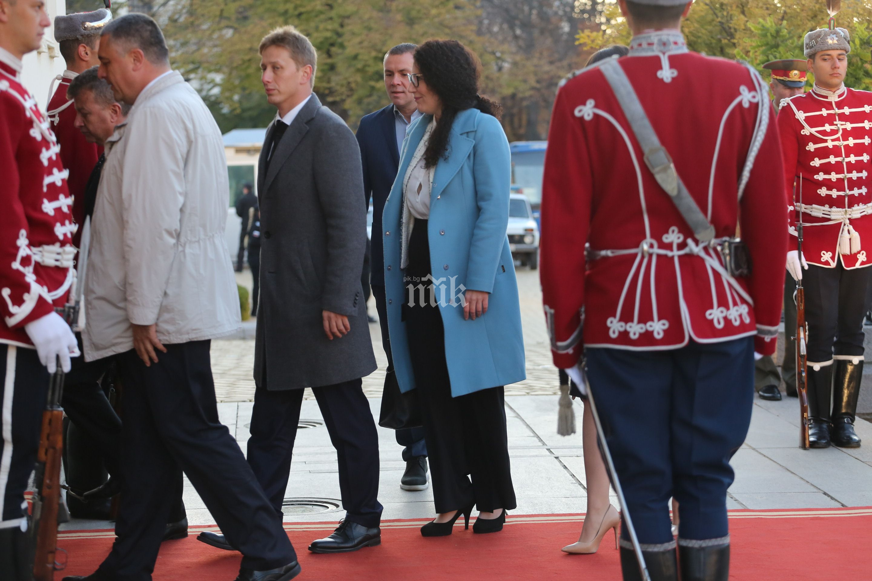 САМО В ПИК: Секси гаф извади на показ пищното деколте на Калина Константинова. Бюст №1 на "Промяната" "напъпи" пред смаяните гвардейчета пред Парламента (СНИМКИ)