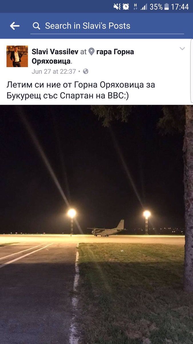 Слави Василев, съветник от екипа на президента Румен Радев, който активно участваше в кампанията му, се изфука във Фейсбук, че лети с държавния глава и то с военния самолет "Спартан".