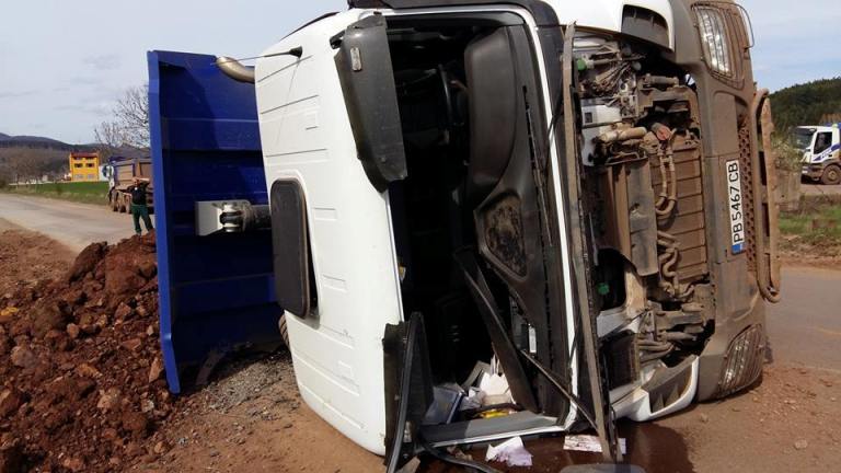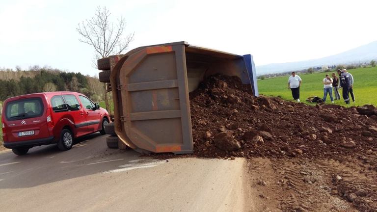 Камион се преобърна край незаконна кариера в района на софийското село Локорско.