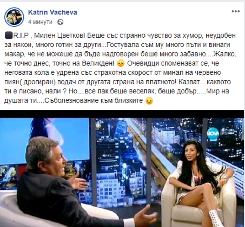 "RIP Милен Цветков. Не мога да повярвам...", написа Ива Екимова.