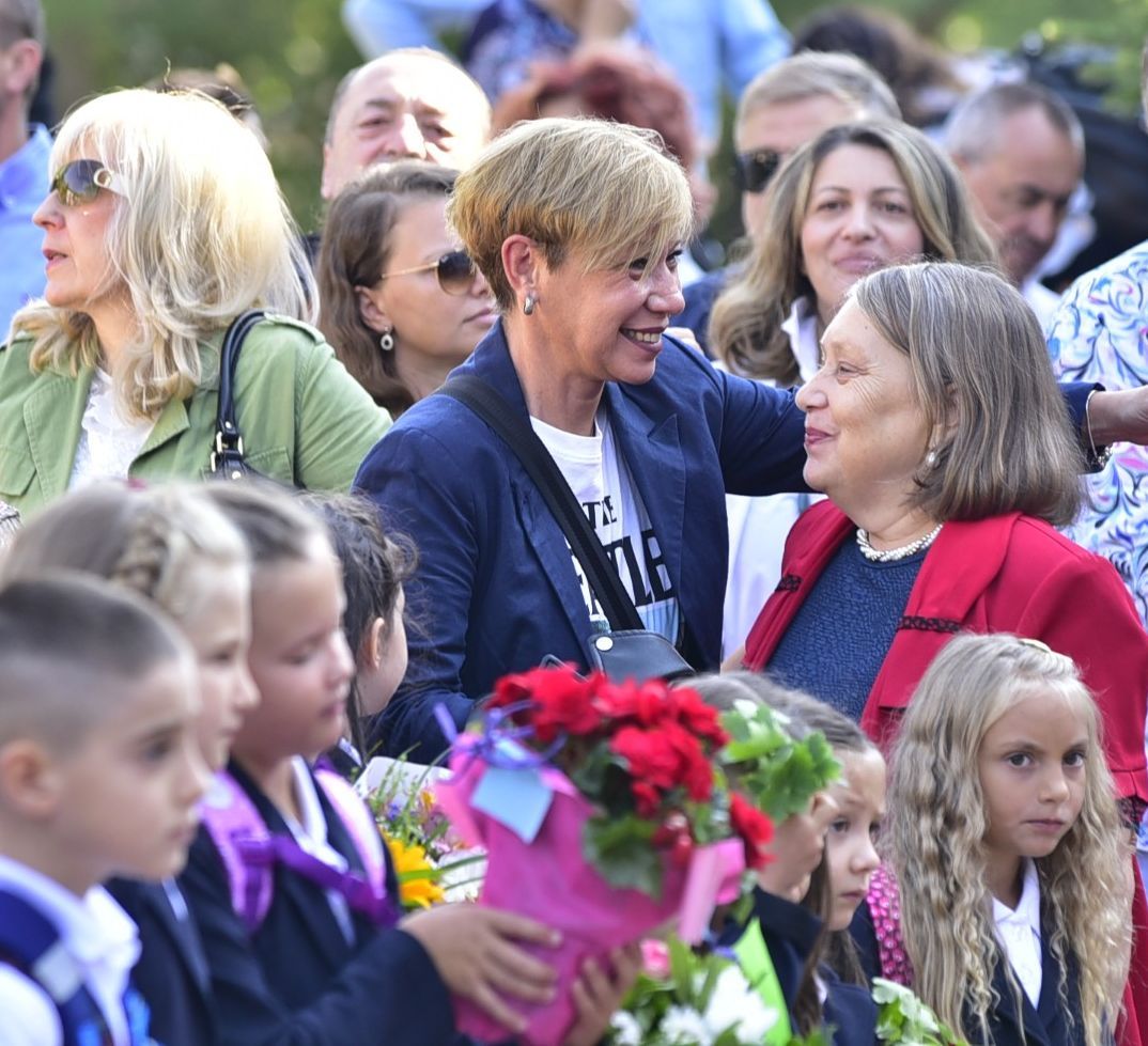Виза да присъства на церемонията обаче имаше Лара Златарева, по-известна като Кака Лара. Това лято бившата тв водеща на "Милион и едно желания" омъжи голямата си дъщеря Бернарда, а днес изпрати в първи клас малката - Бенджи.