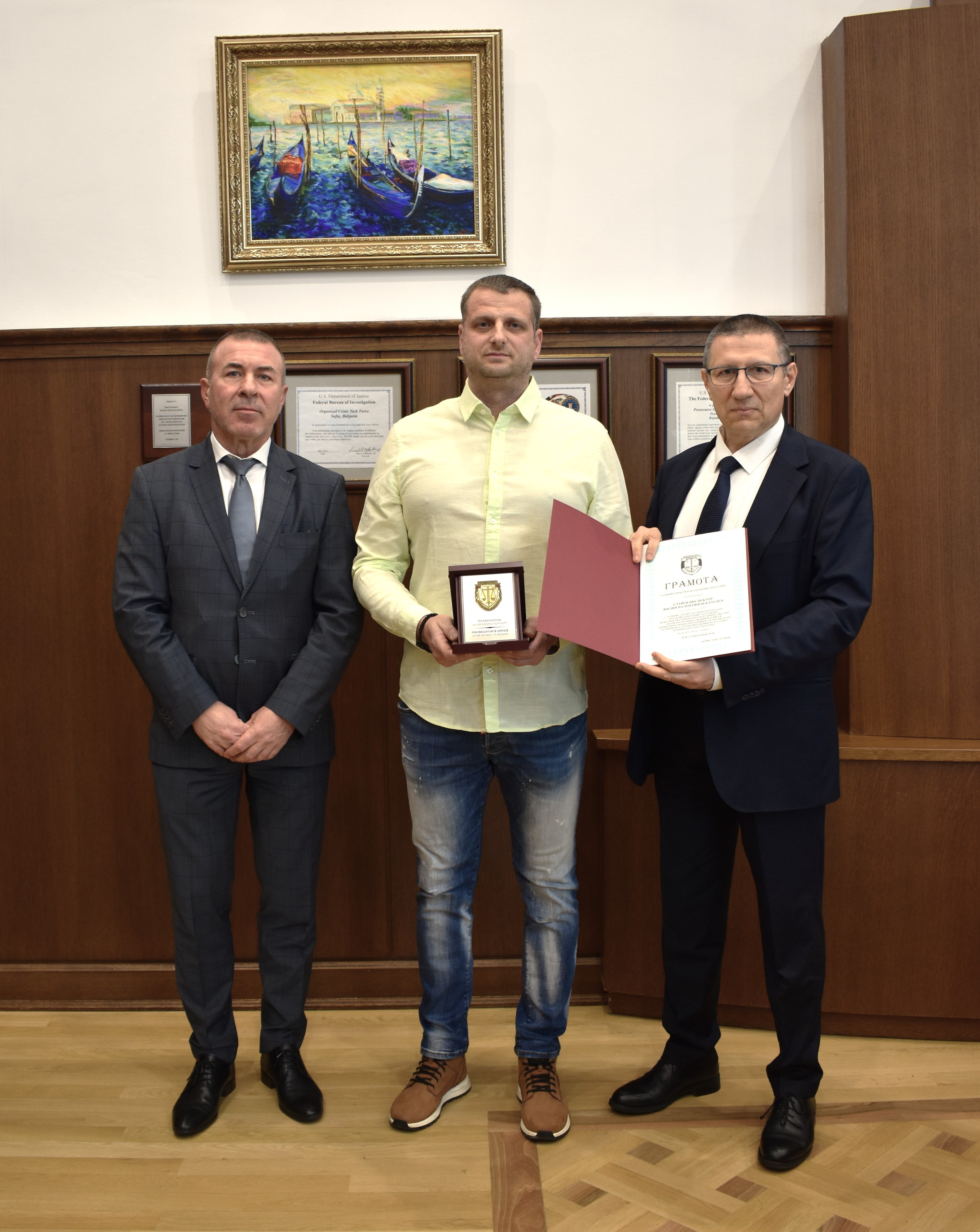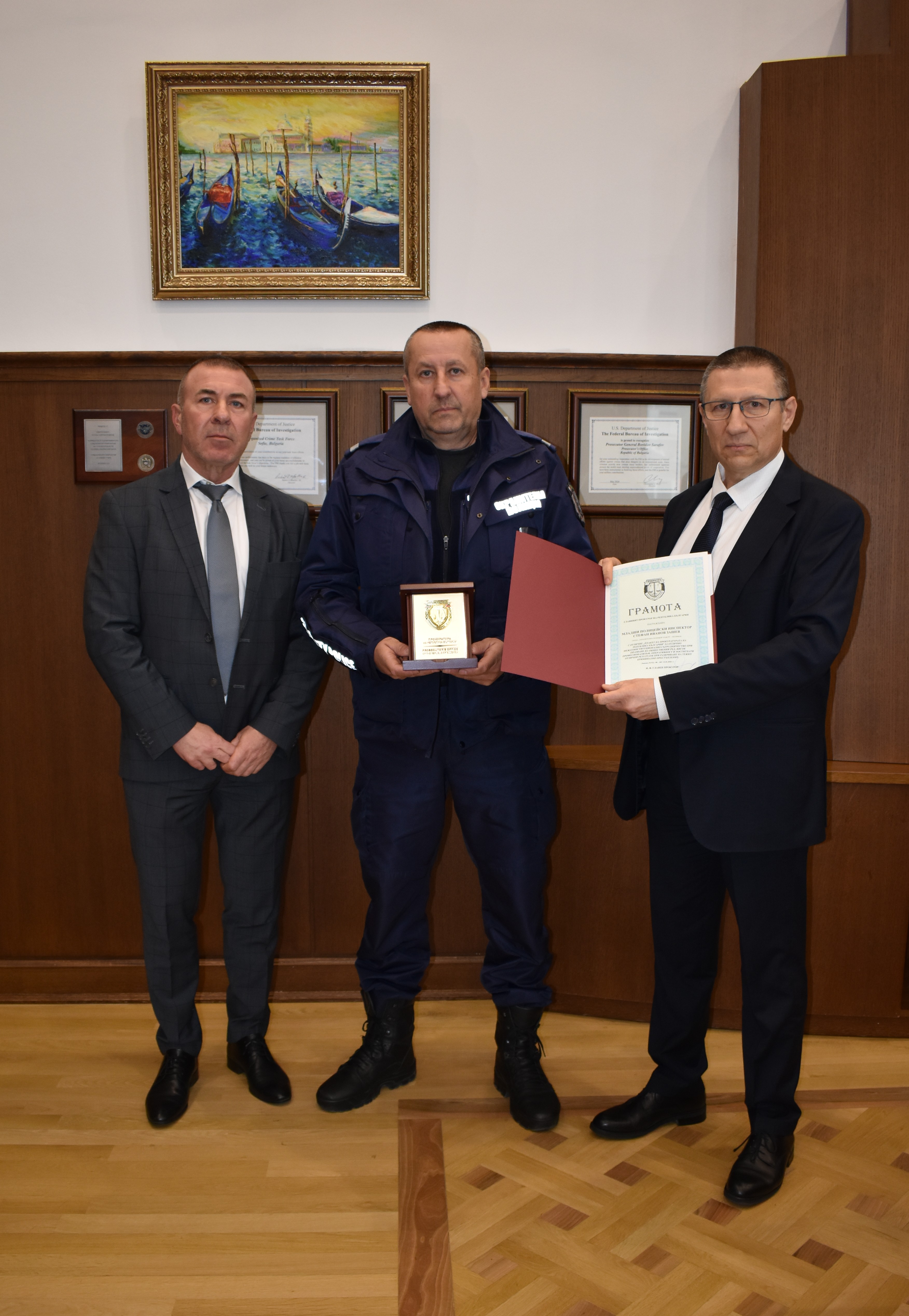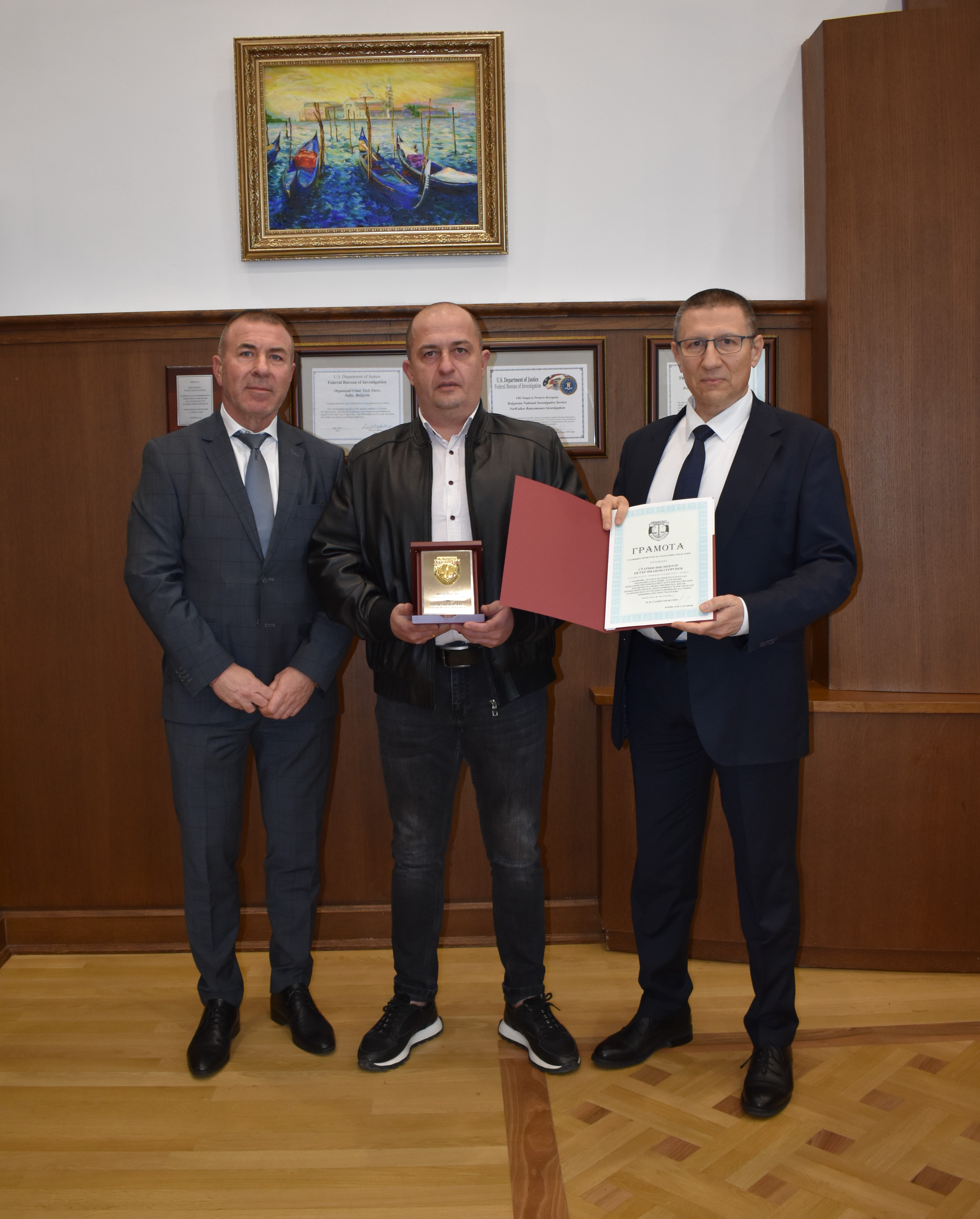 И.ф. главен прокурор Борислав Сарафов награди с грамоти и плакети „Прокуратура на Република България“ главен инспектор Филип Благоев - началник на Районно управление-Ихтиман, старши инспектор Петър Георгиев - началник група Криминална полиция към РУ Ихтиман и младши полицейски инспектор Стефан Зашев - група Охранителна полиция към РУ Ихтиман. Отличията са за проявен висок професионализъм в изпълнението на служебните задължения при разкриването на въоръжен грабеж на голяма парична сума от инкасо автомобил.