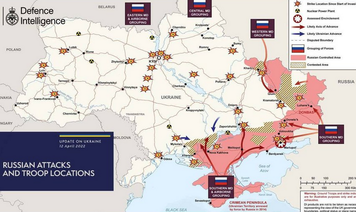 От руска страна се хвалят с унищожени 130 украински самолета и 99 украински хеликоптера от началото на войната. Отделно са унищожени 244 зенитни ракетни комплекса, както и 445 дрона, 2153 танка, 241 ракетни установки, 924 оръдия и минохвъргачки и 2063 военни автомобила. Към днешна дата обаче, според британското министерство на отбраната Русия продължава да гледа към цяла Източна Украйна, включително Киев, като цел.