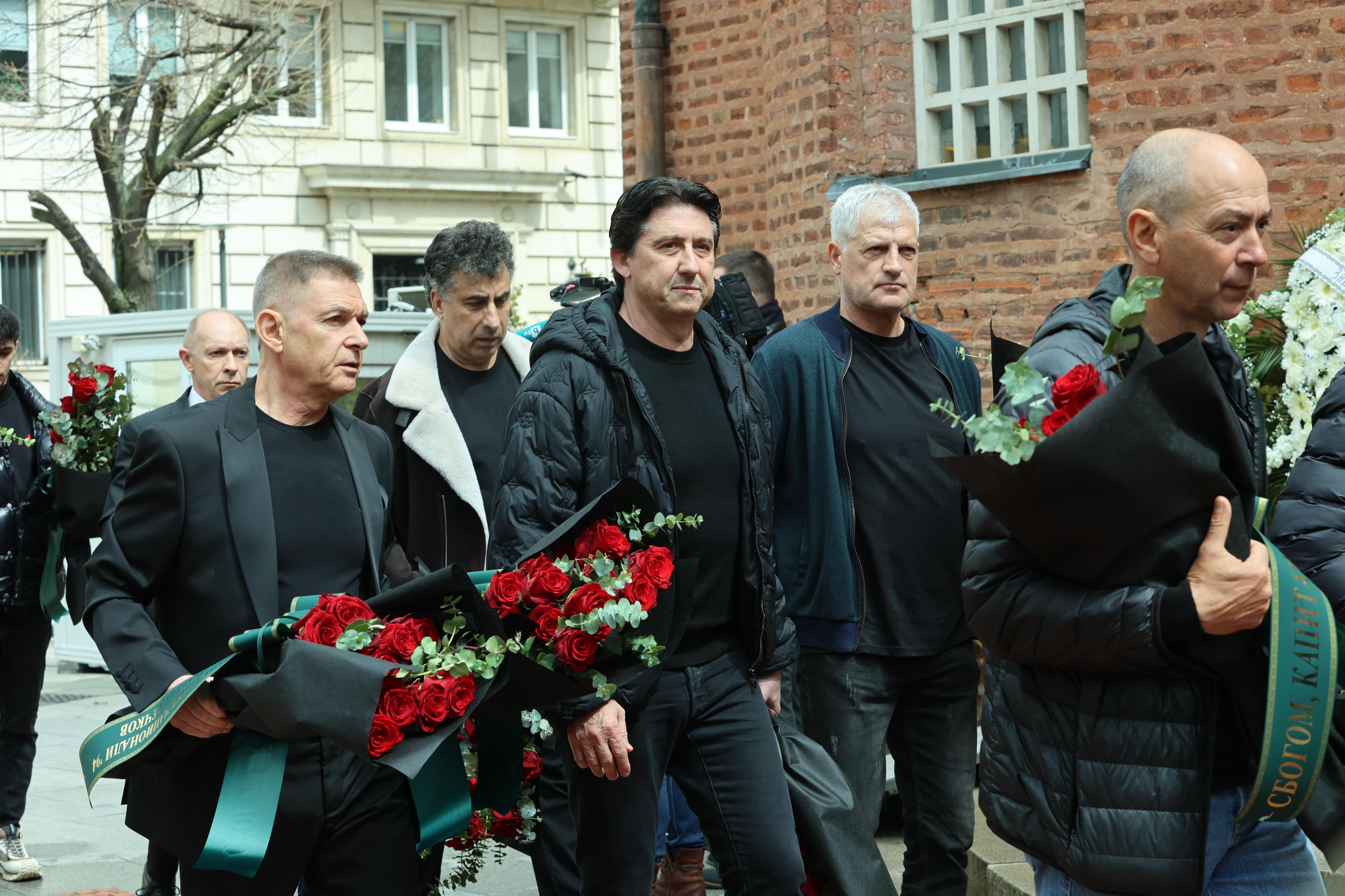 Сред първите, които изпратиха своя приятел в последния му път, бяха Христо Стоичков и Красимир Балъков. Те пристигнаха в църквата с огромен венец.