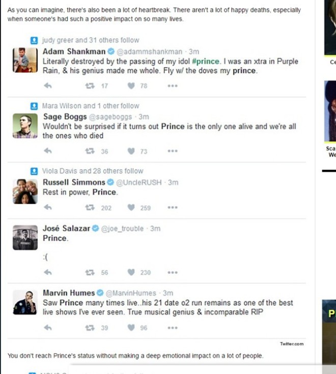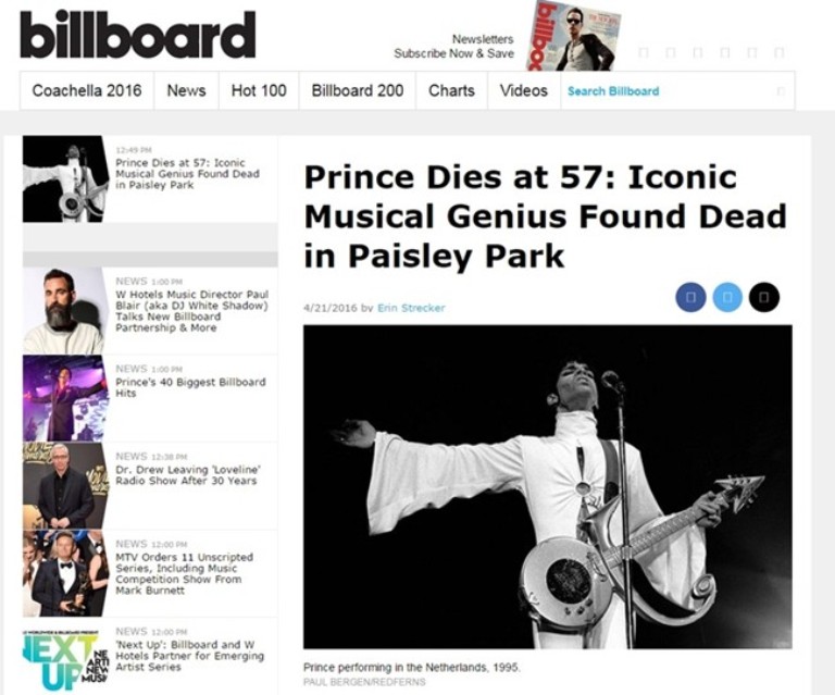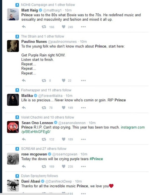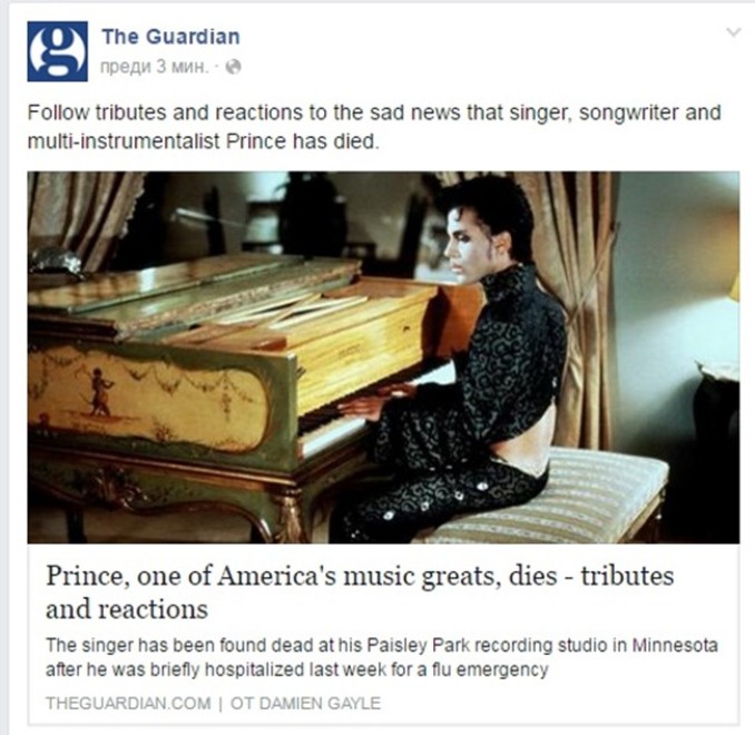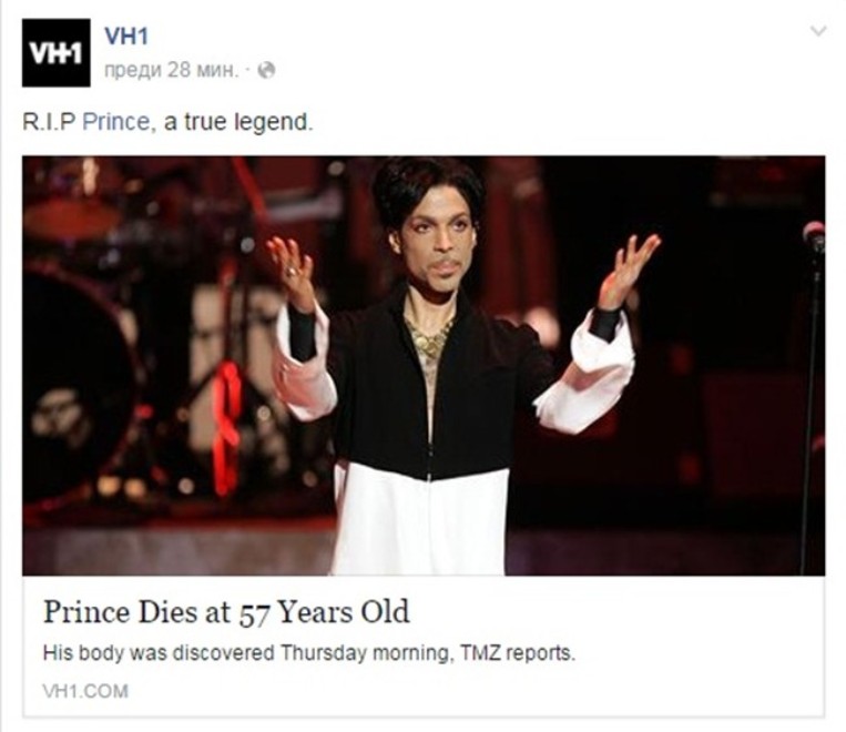 Внезапната смърт на легендарната поп икона Принс взриви социалните мрежи.