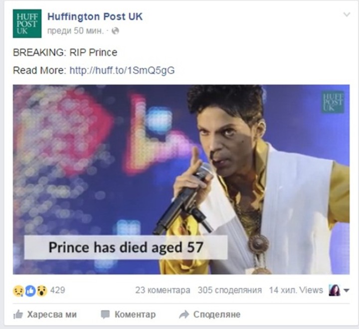 Медии, известни личности и фенове публикуваха във Фейсбук и Туитър своите емоционални послания относно кончината на певеца.
