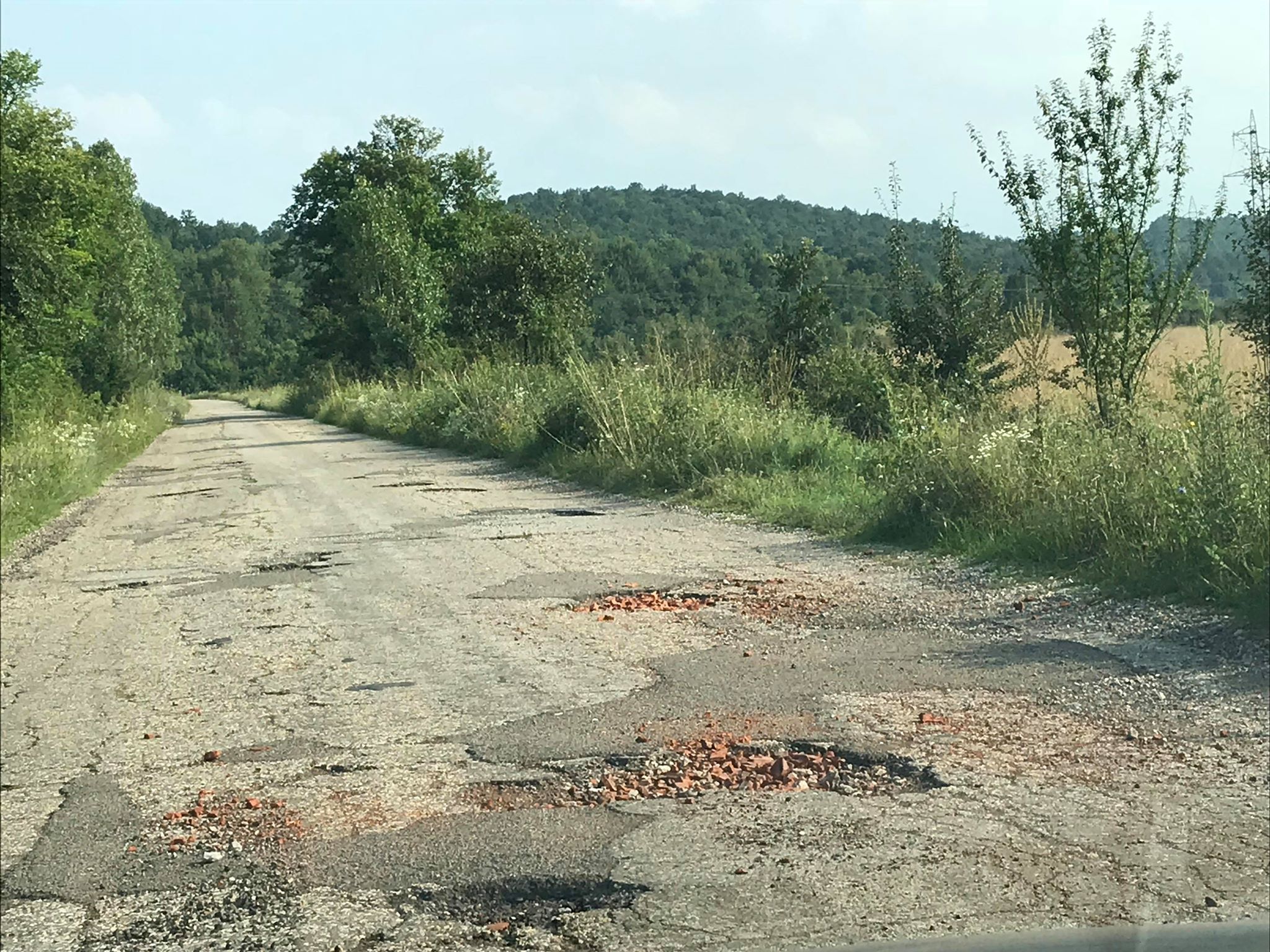 Пътят за Балювица, където може да се мине само с марсоход. Местните събират средства, за да запълнят сами дупките