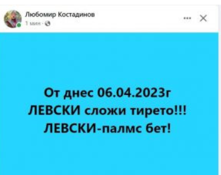 "От днес 06.04.2023 г. ЛЕВСКИ сложи тирето!!! Левски-палмс бет!".