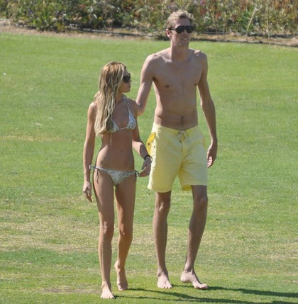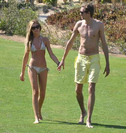 Футболистът на "Стоук Сити" Питър Крауч и красивата му съпруга Аби прекараха един романтичен ден на плажа. Моделката и нападателят се радват на топлото слънце в Дубай по време на кратката си ваканция. Високата 175 см футболна съпруга изглеждаше ниска в сравнение със своя любим, а и двамата показаха добре оформените си тела. Аби беше със светъл изрязан бански, докато Питър - с жълти бермуди до коляното. Двамата не спряха да показват близост и не се притесниха от фотографите, които постоянно дебнеха за пикантни кадри.