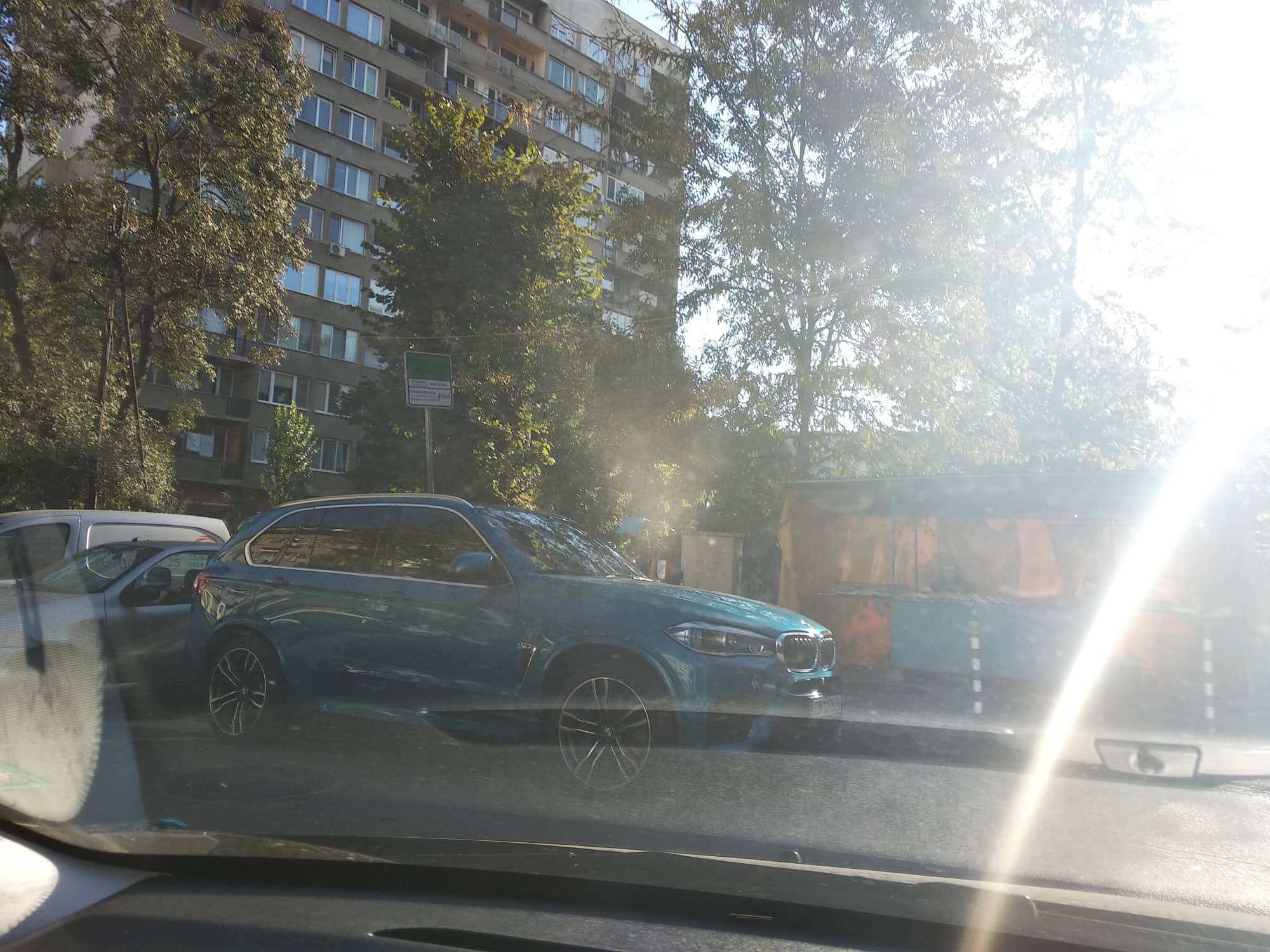 Електриково синьото беемве на обвиняемия олигарх Иво Прокопиев бе заснето тази сутрин пред входа на 4 РПУ. Странният начин на паркиране - напречно на подредените една до друга коли, възмути столичани от ж.к. Лозенец.