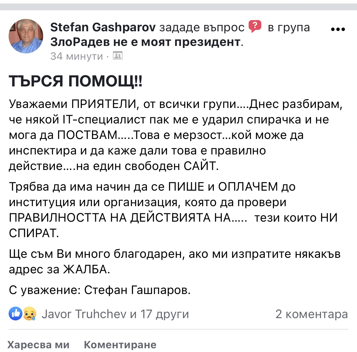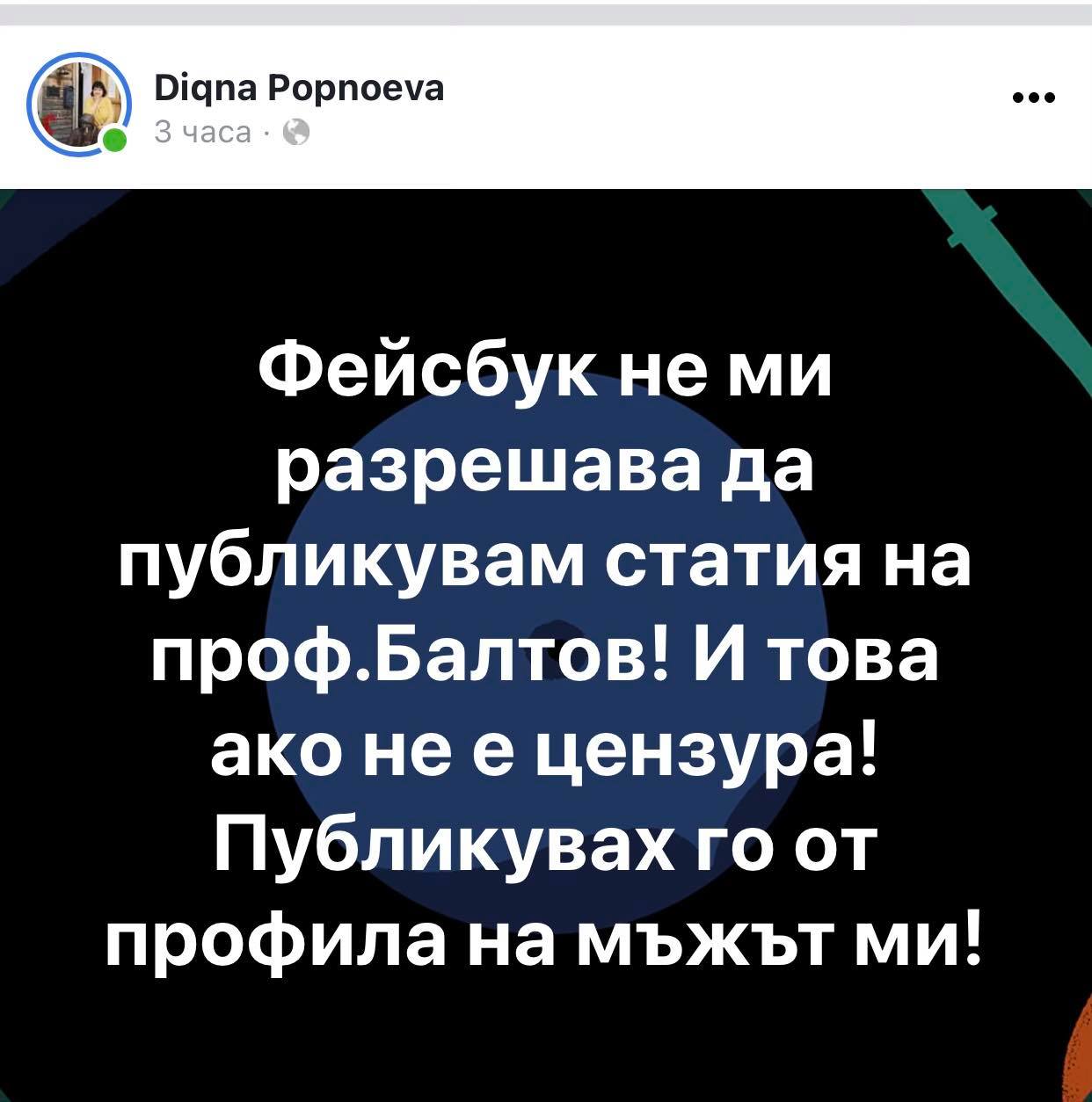 Моля, дайте гласност на тази невиждана и безпрецедентно вихреща се пропаганда в интернет пространството и на своеволната, нагла и насилствено наложената цензура във Фейсбук, защото това е напълно недопустима репресия върху хората, които имаме различно мнение и не подкрепяме "партиите на промяната" и Румен Радев.