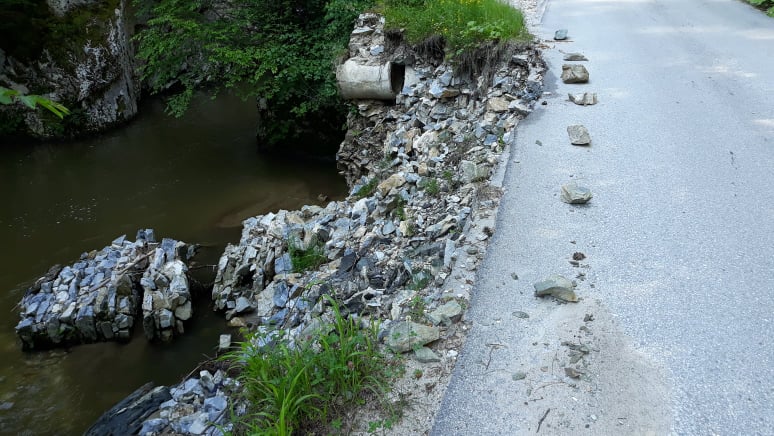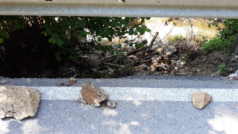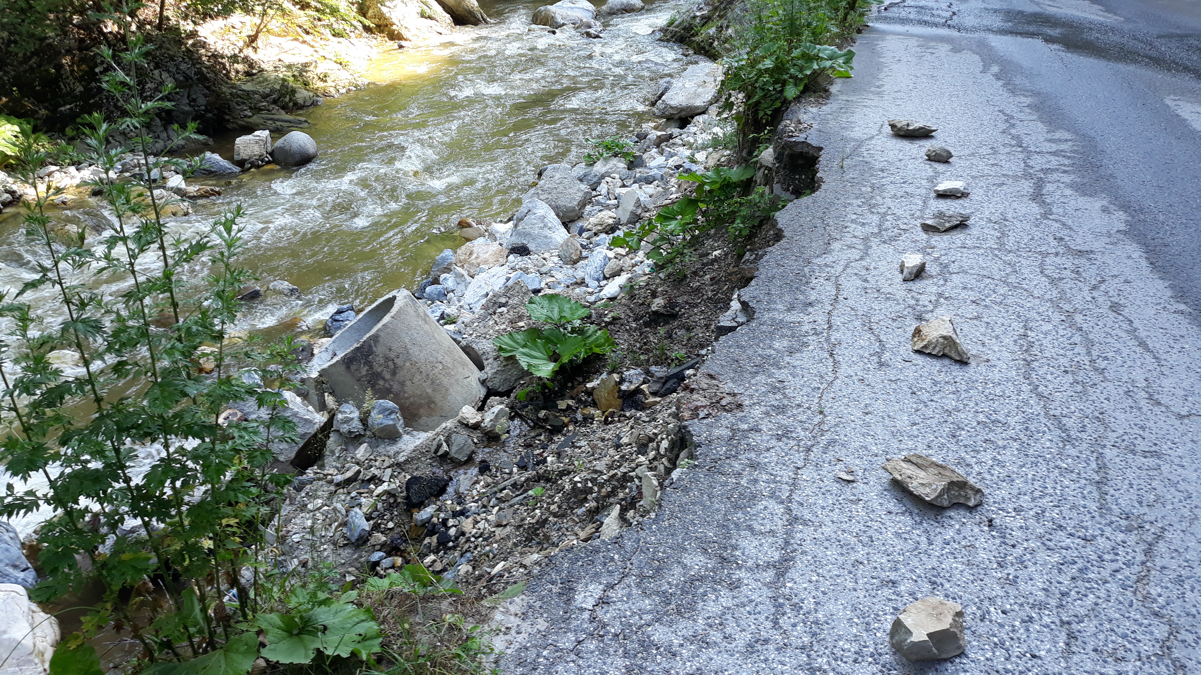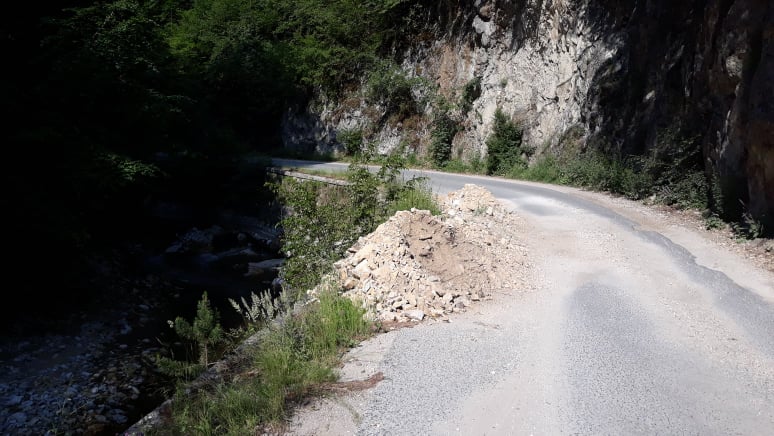 Жителите на Буйново, Кожари и Ягодина са на нокти при всеки дъжд, защото тесният път, виещ се из ждрелото на Буйновска река, заплашва да се свлече в коритото й.