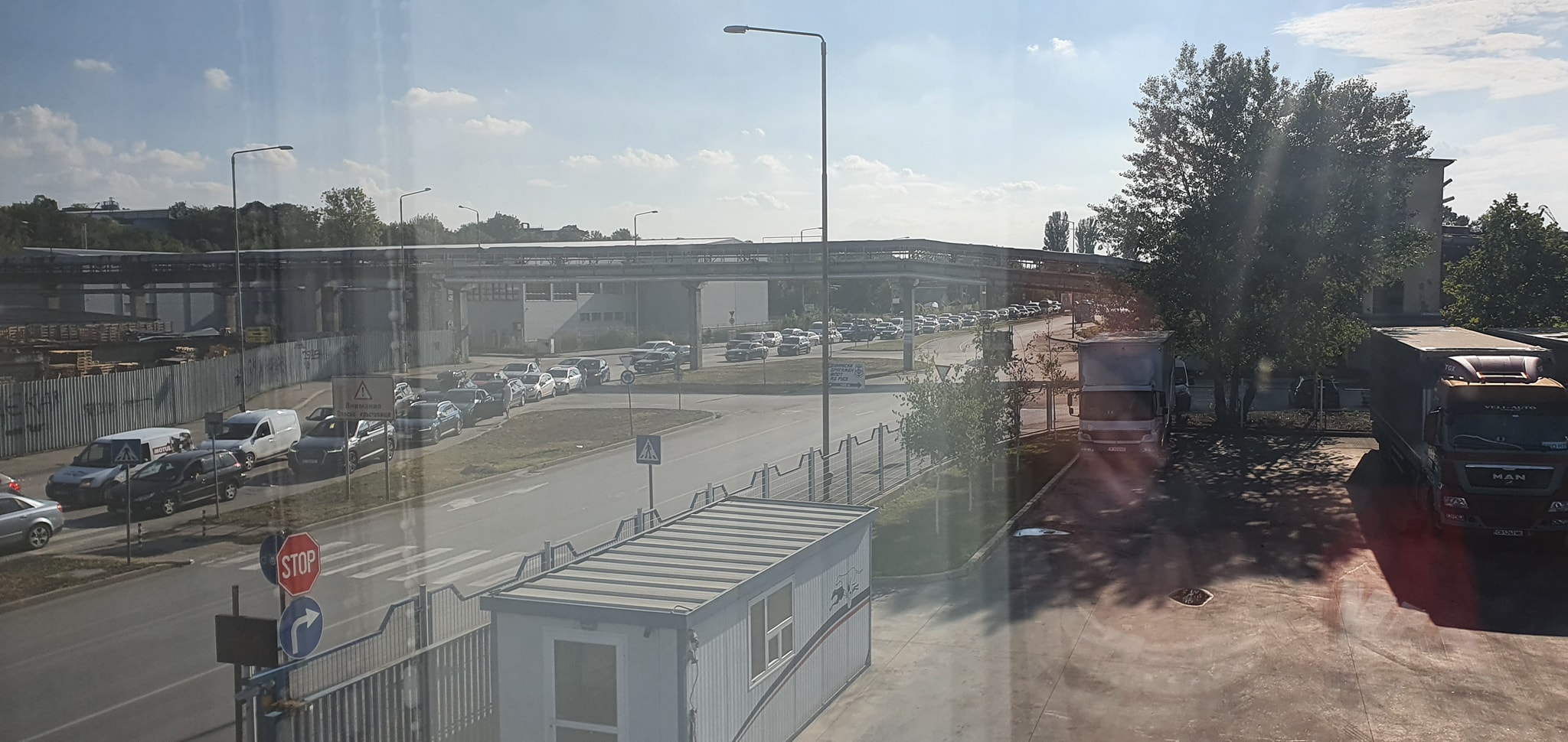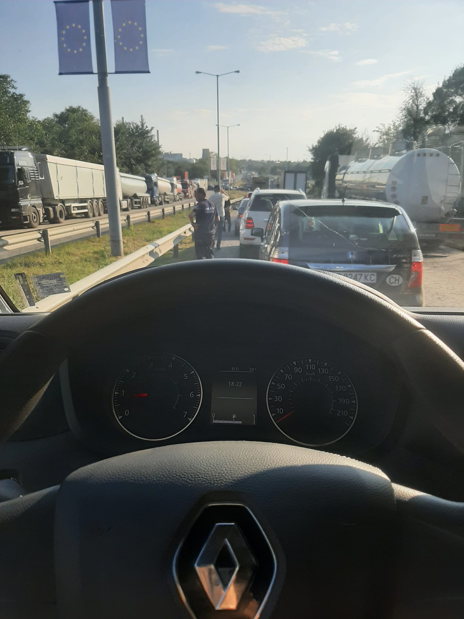 Движението в Русе по маршрута към "Дунав мост" и съседните населени места в източна посока е блокирано отново от товарни и лични автомобили, които чакат да преминат граничния пункт с Румъния, сигнализира читател на ПИК. Зловещите тапи изнервят шофьорите, а в адските жеги чакането се превръща в ад.