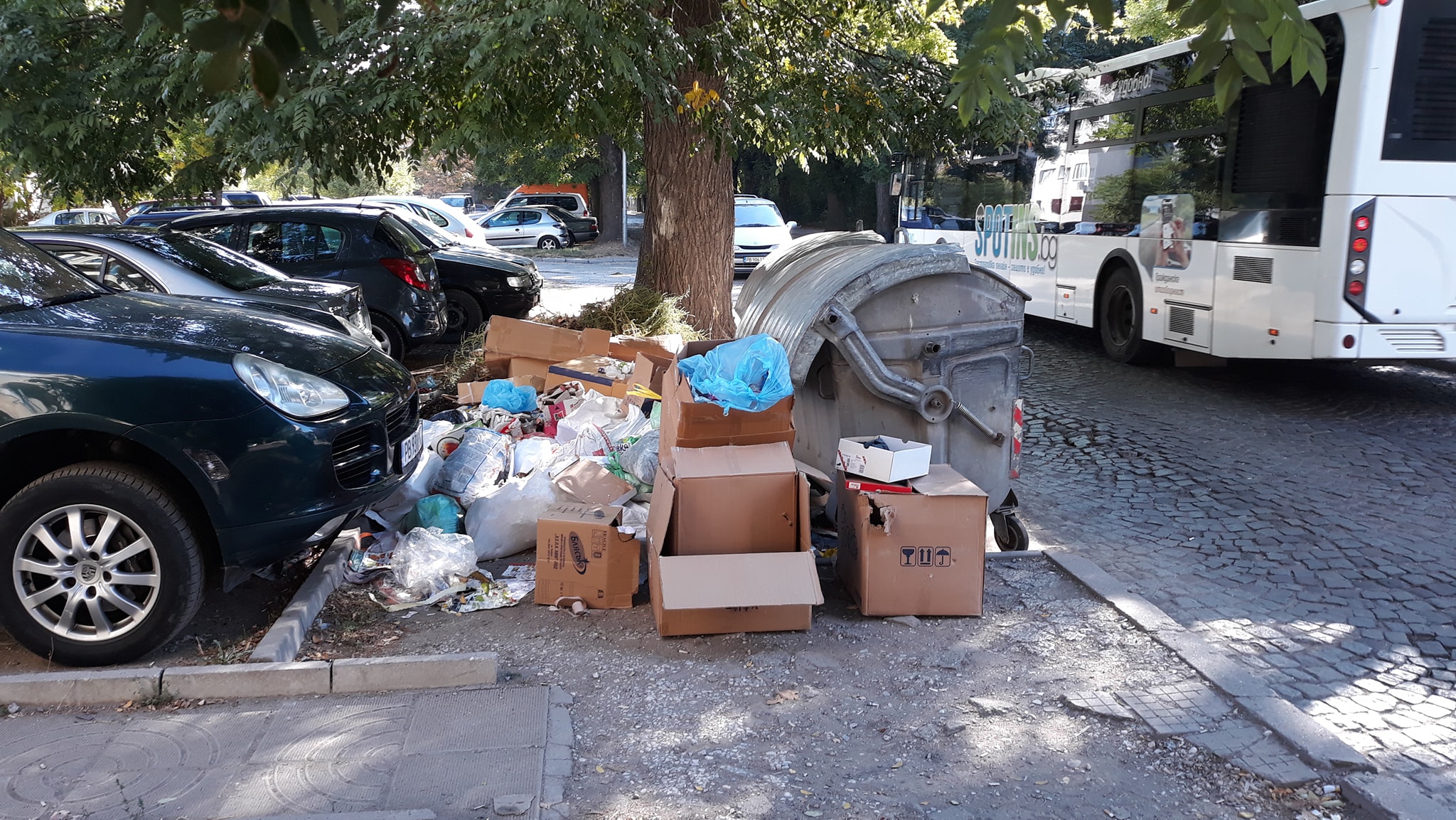 “Очевидно е, че има и нарушители, които са си изхвърли обемистите кашони в съдовете за битови отпадъци, но това не пречи на "Чистота" да си свърши работата и да вдигне камарите вмирисани боклуци", жалват се хората в сигнал до ПИК.