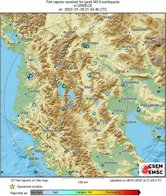 Епицентърът е близо до границата на страната със Северна Македония, като кореспондентът на bTV в бившата югорепублика съобщава за нанесени материални щети в Битоля.