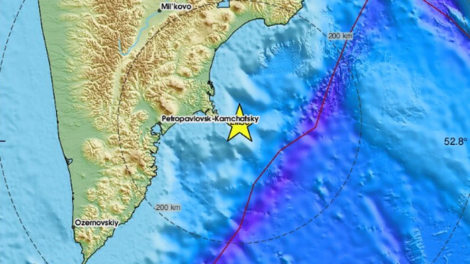 Земетресение с магнитуд 5,3 по скалата на Рихтер е регистрирано днес край източните брегове на Камчатка, показва справка на сайта на Европейския средиземноморски сеизмологичен център (EMSC).