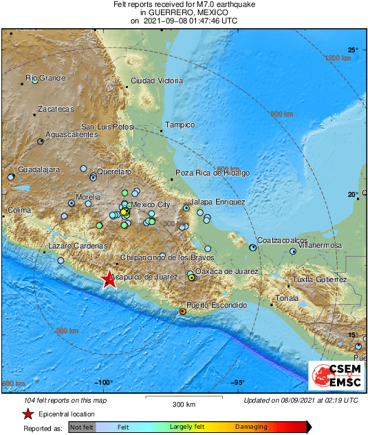 Земетресение с магнитуд 7,4 по Рихтер разтърси Мексико. Епицентърът му е бил на 37 км северозападно от Сан Маркос и 14 км югоизточно от Акапулко, щата Гереро, отчете американският геофизичен институт (USGS).