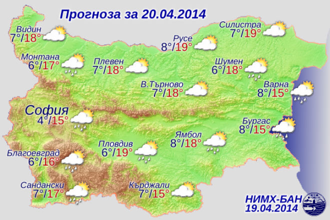 През нощта облачността ще е предимно значителна, а на места в Западна България все още ще превалява дъжд. Минималните температури ще са между 4° и 9°.