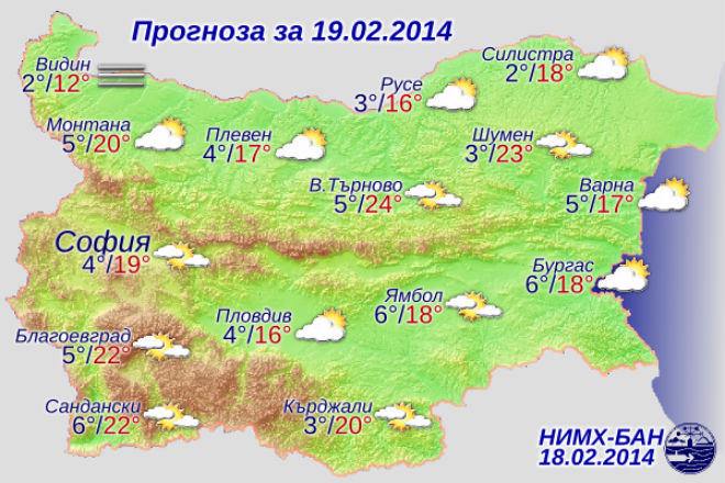 През следващото денонощие времето над страната ще остане значително по-топло от нормалното за средата на февруари. Това съобщи пред ПИК дежурният синоптик Христо Христов от Националния институт по метеорология и хидрология (НИМХ) към Българската академия на науките (БАН).