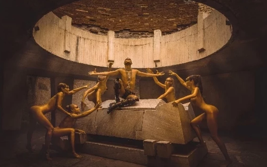 "Попаднах на снимка на крипта, която се оказа в паметник в град Перущица, на десет минути път с кола от Пловдив. За да изкараме един кадър се подготвяхме дни наред, проучихме терена, разположението му, как пада светлината в различните часове, поръчахме специална златна боя… В деня на снимките десет човека работихме дванайсет часа. От сутрешния грим, до заснемането в късния следобед. Всички участвахме от любов към фотографията, а наградата ни беше крайният резултат. Атанас Петков"