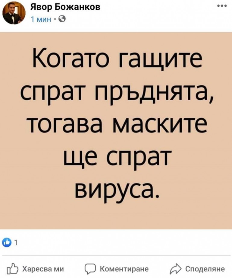 „Когато гащите спрат пръднята, тогава маските ще спрат вируса“. Тази „гениална“ мисъл принадлежи на депутата от БСП Явор Божанков.