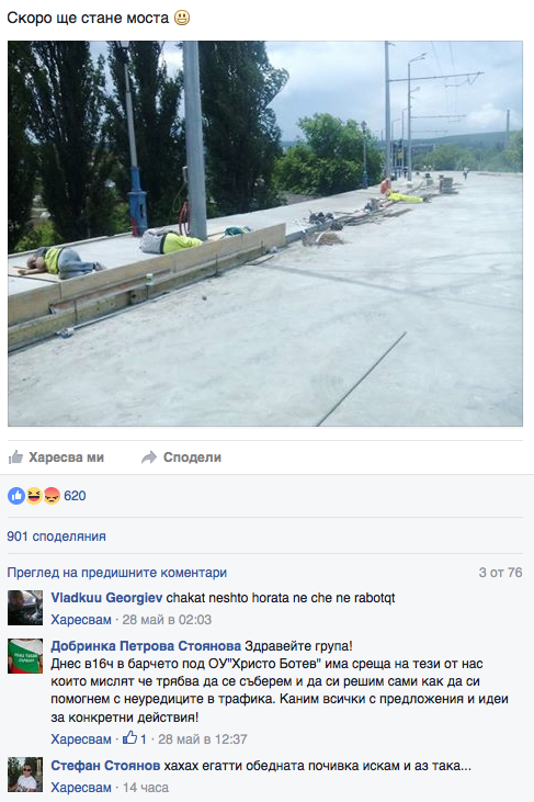 В социалните мрежи в истински хит се превърна снимка, на която се вижда как строителни работници, заети с ремонта на Аспаруховия мост във Варна, подремват в работно време Мъжете са налягали по изграждащия се в момента тротоар.