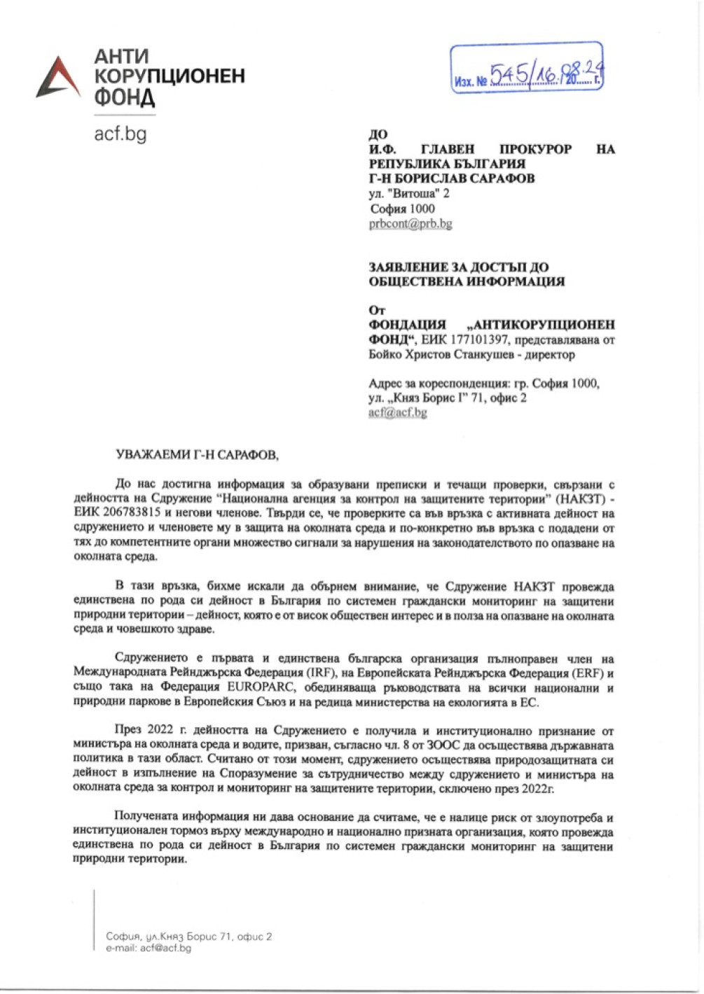 Както вече стана известно, с писмото си фондът настоява прокуратурата, МВР и КПК да предоставят информация дали са подавани сигнали срещу сдружението и негови членове, какви действия са предприети по тях и дали има възложени проверки от други институции, като се позовава на надделяващ обществен интерес.