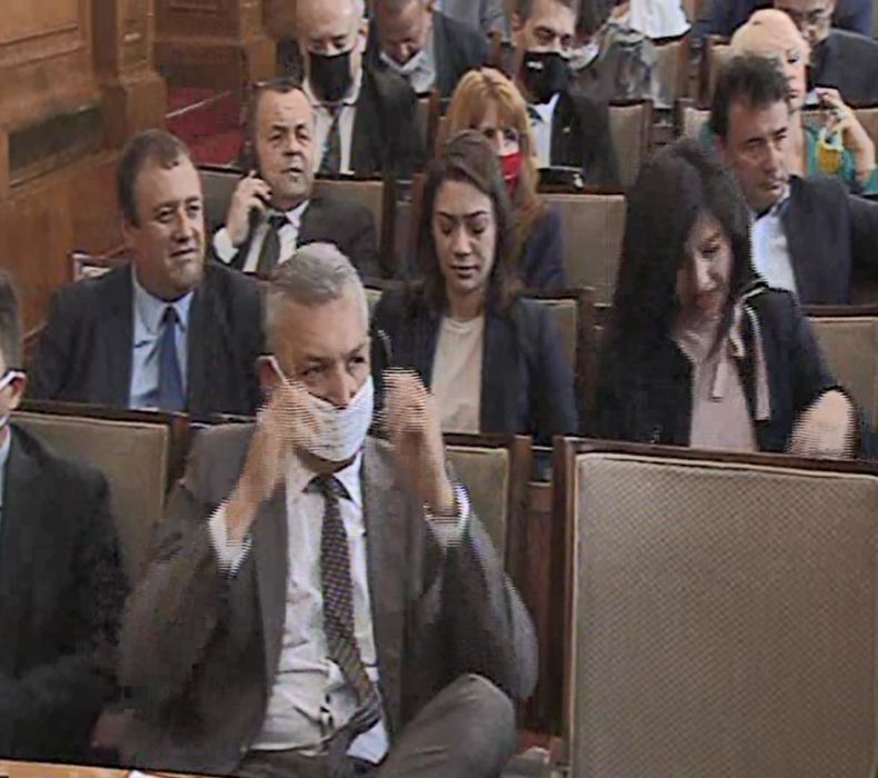 Червените депутати нямат маски дори на врата...