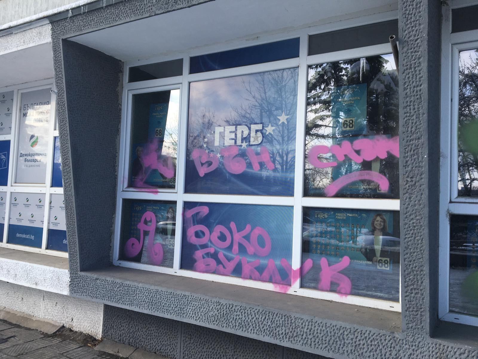 Скандална вандалска акция срещу офиси на ГЕРБ шокира жителите на столичните квартали Подуене и Слатина, където се намират партийните клубове. Това сигнализират граждани, останали потресени от вида, в който са осъмнали офисите.