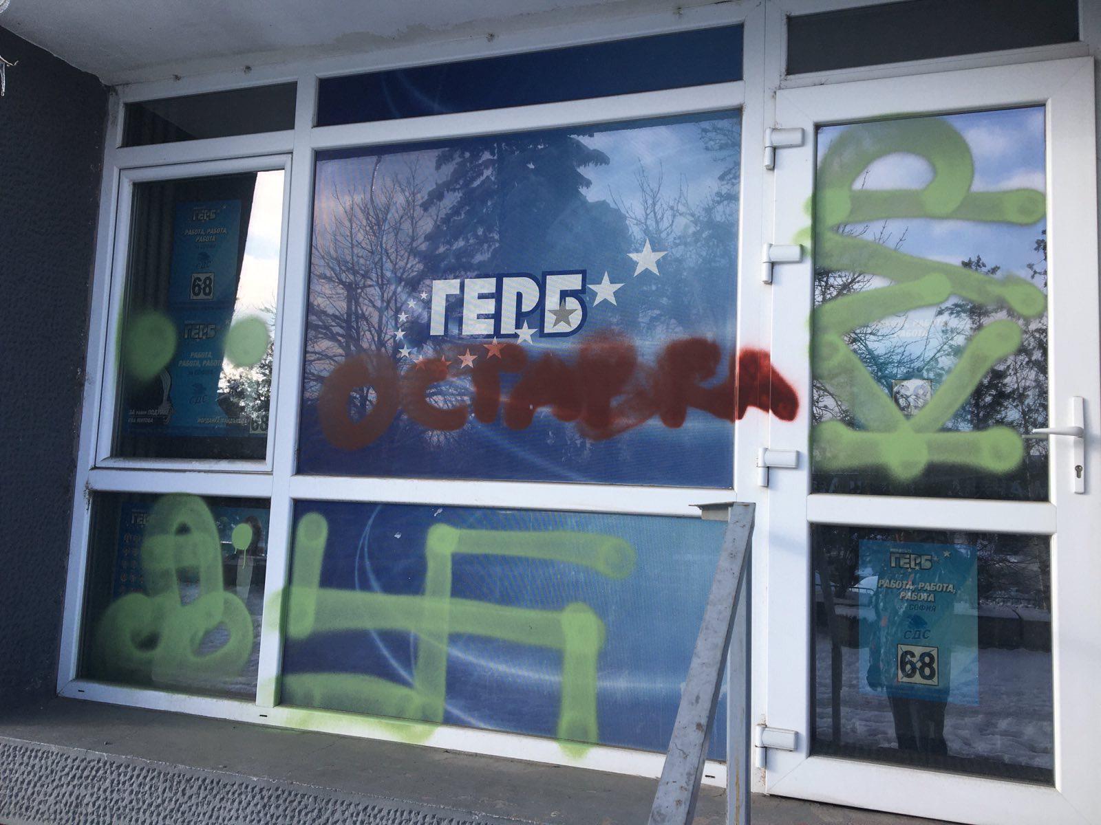 Върху стъклата са надраскани свастики, и то след като вчера бе денят за почит на жертвите от Холооста и всички от ГЕРБ се поклониха и почетоха тъжната дата. Лично премиерът Борисов пръв отправи послание за мир и пожела никога в човешката история да не се повтарят такива черни периоди.