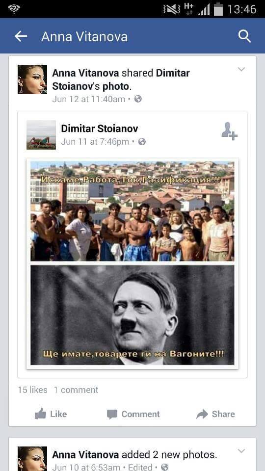 Кратка разходка из профила на Витанова показва, че само ден преди началото на протестите в „Орландовци“ Витанова качва в профила си снимка, която може да бъде наречена расистка. На нея над няколко роми е написан текст „Искаме, работа, ток, газификация!!!“. Под тях пък е ликът на Адолф Хитлер с текст под него „Ще имате, товарете ги на вагоните!!!“.