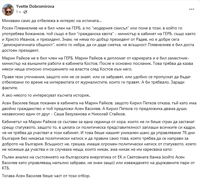 Точно тази тема коментира и Добромирова, като разкри любопитни подробности как Асен Василев се е озовал на министерския пост в кабинета на Марин Райков.