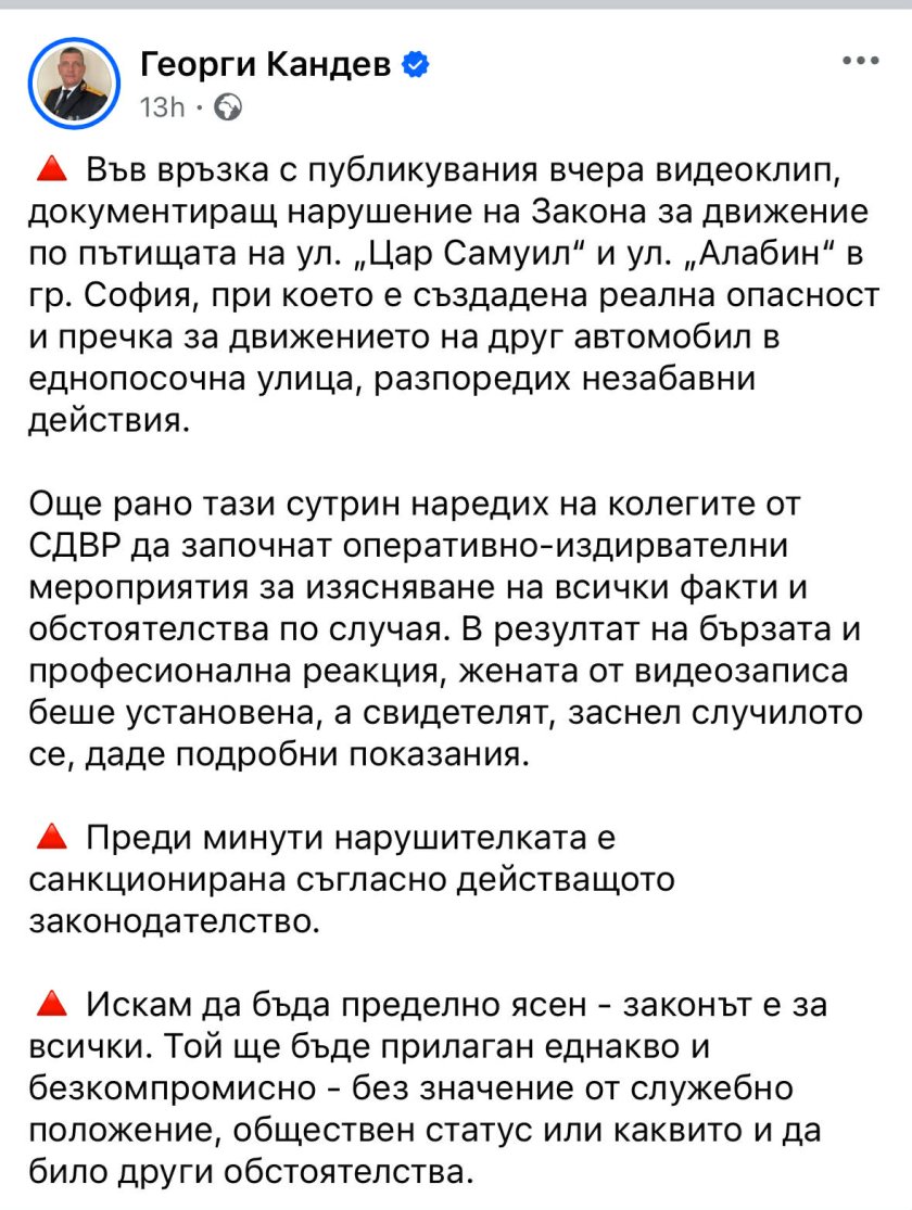 В своя публикация във Фейсбук, Кандев написа: