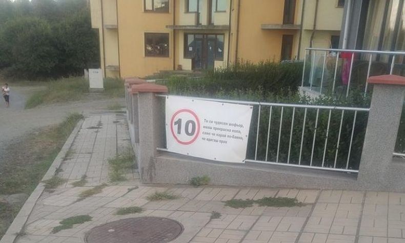 Собственици на имоти в новия квартал в Ахтопол предпреха нетрадиционен ход, поставяйки табела с искане към шофьорите за огарничение на скоростта в квартала от 10 км/час, съобщава „Бургасинфо“.