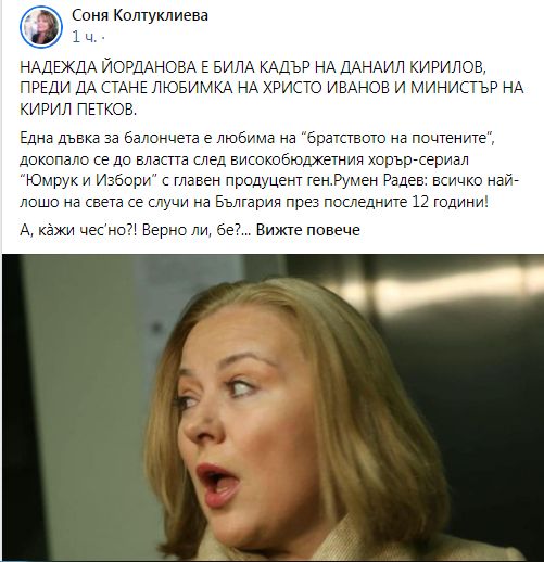 Ето какво пише Соня Колтуклиева в социалната мрежа: