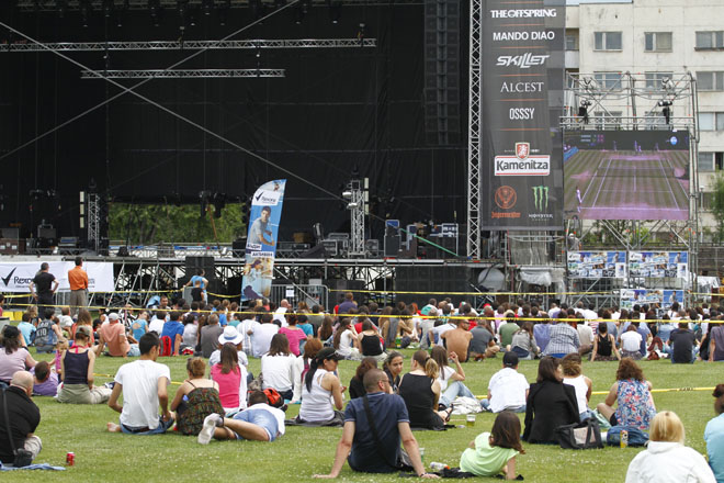 Решителният полуфинален мач на Григор Димитров на престижния тенис турнир "Уимбълдън" събра стотици столичани на стадион "Академик" в София.