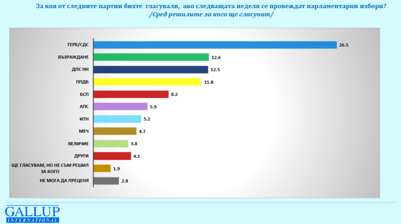 СОЦИОЛОГИЯ НА ГАЛЪП: ГЕРБ увеличава преднината, ДПС-НОВО НАЧАЛО е фаворит за второто място (ГРАФИКИ)