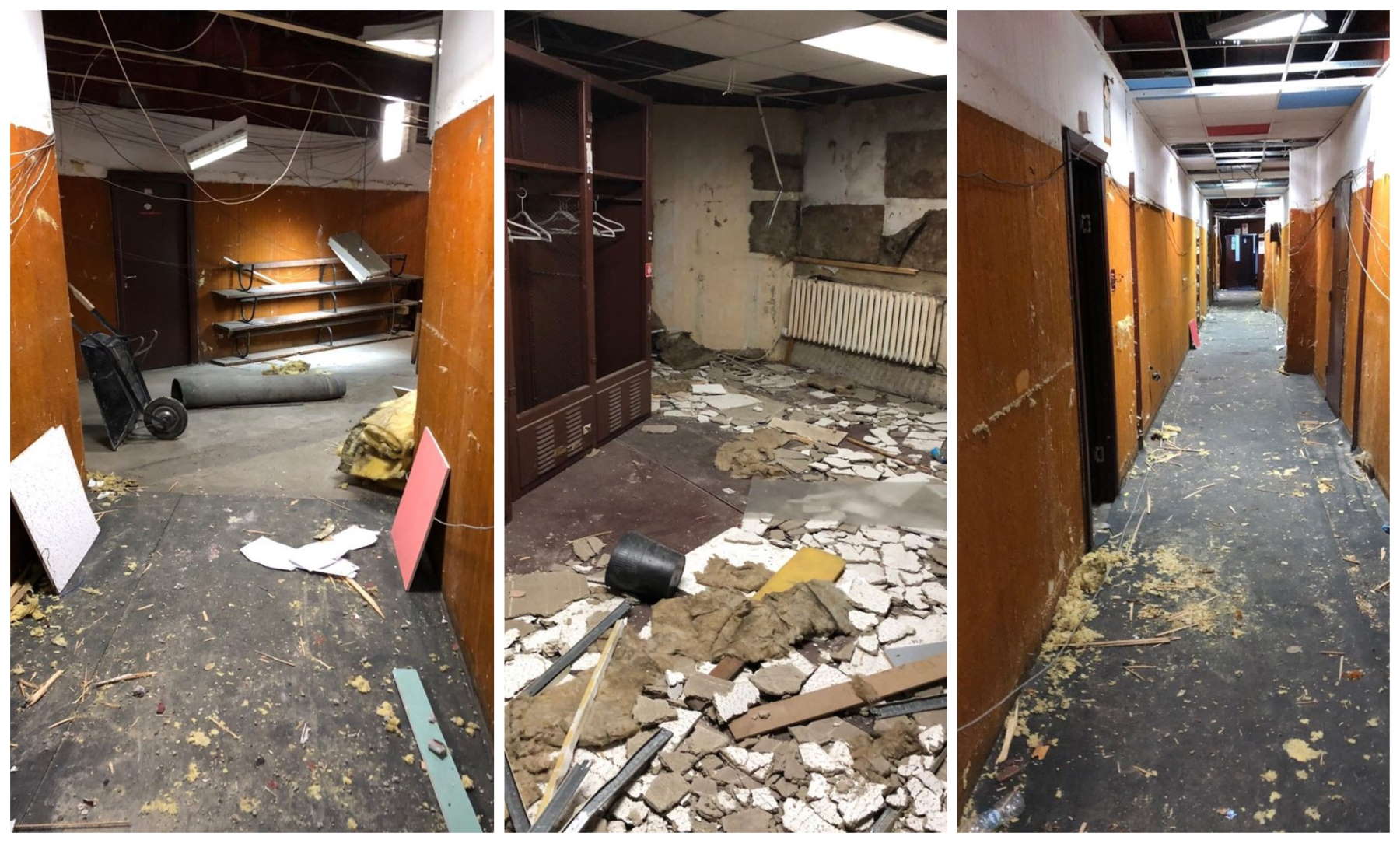 Съблекални може да се каже, че нямаше. Нито пък зали за загрявка. За отопление не можеше да става и дума – по някаква неназована причина радиаторите и отоплителите на седалките били унищожени през 90-те. И за капак: от покрива се изливаше сериозен теч, който заплашваше да съсипе и малкото, което все още беше запазено.