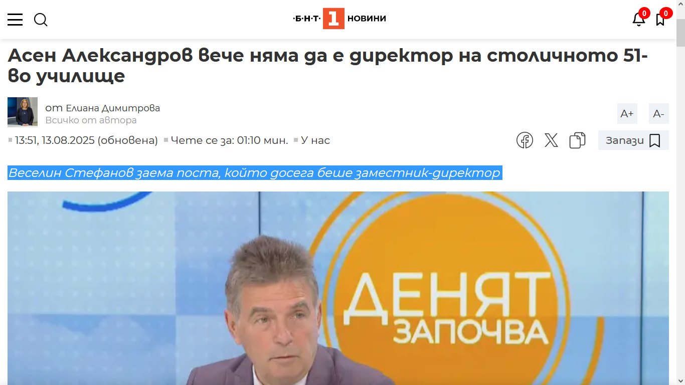 Според публикацията от вчера на обяд в едно от столичните училища сменят директора. Подзаглавието гласи: