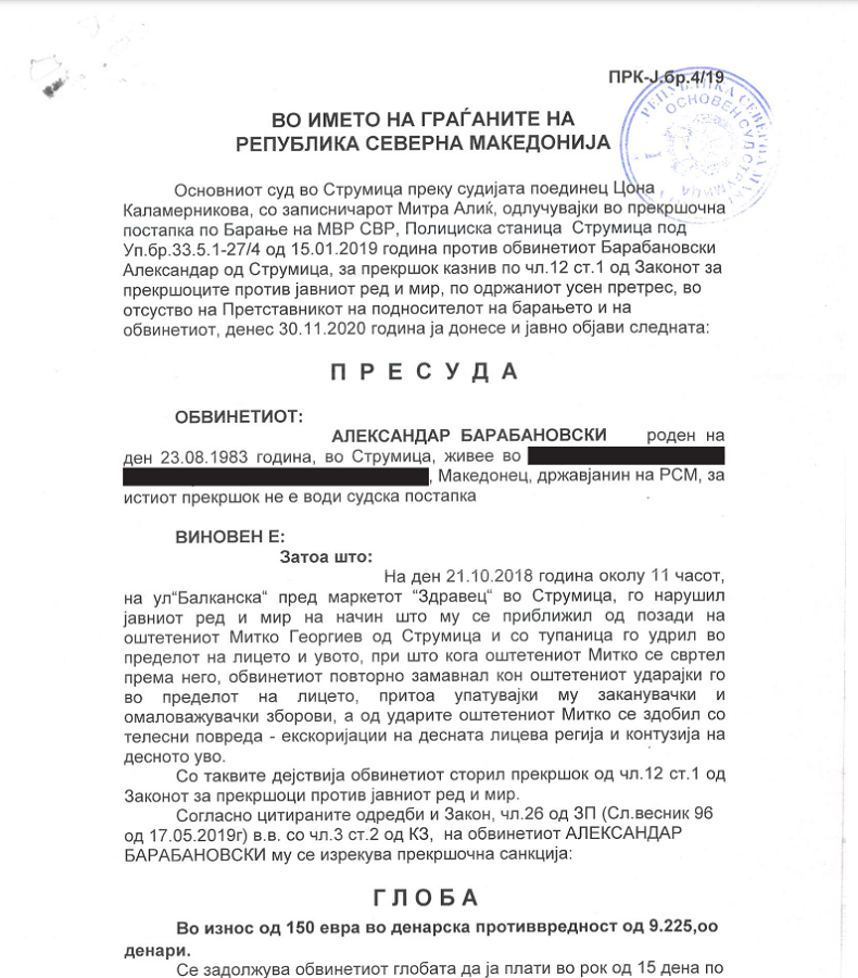 СТРАШЕН СКАНДАЛ: Близък на Заеви преби македонски българин. Викал: ще те утепам, изсели се от Македония! (СЪДЕБНО РЕШЕНИЕ)